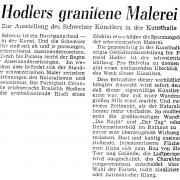 Dans le rayonnement culturel de la Suisse, la place éminente de Hodler se confirme dès les premières décennies du XXe siècle. En 1920, la première participation de la Suisse à la Biennale de Venise réunit presque exclusivement des tableaux du peintre bernois. Pro Helvetia, dès sa création, utilise également Hodler comme symbole à l’étranger de l’identité suisse.