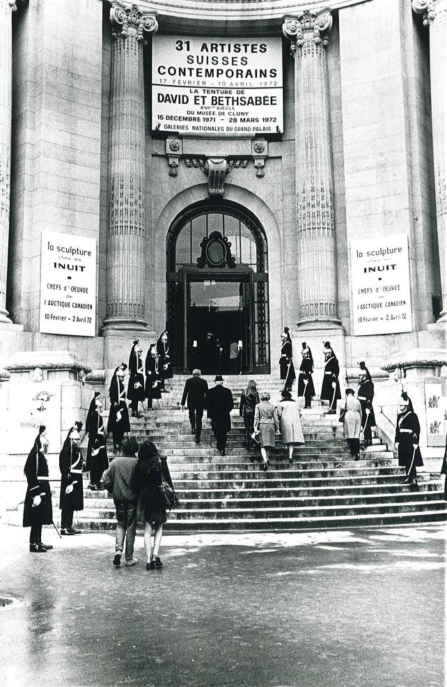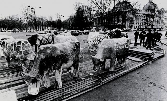 Durant le printemps 1972, un obstacle inattendu complique la circulation sur l’artère principale de Paris, les Champs-Elysées : il s’agit d’un troupeau de vaches en plastique colorées par l’artiste suisse Samuel Buri. Cette œuvre est appelée à devenir l’installation la plus remarquée de l’exposition 31 artistes suisses contemporains.