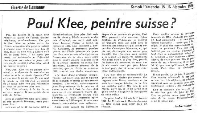 Par la suite, le prestige international de Klee sera un argument plus solide que la référence à son origine.